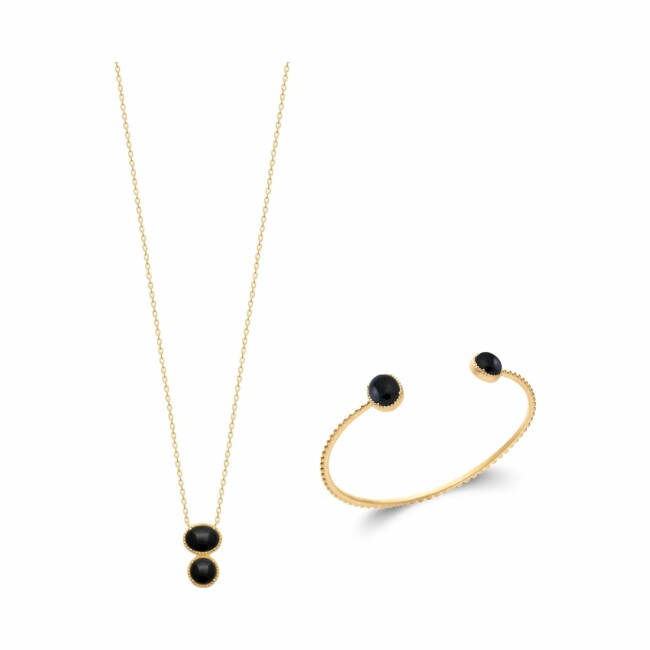 Bracelet jonc en plaqué or et agate noire