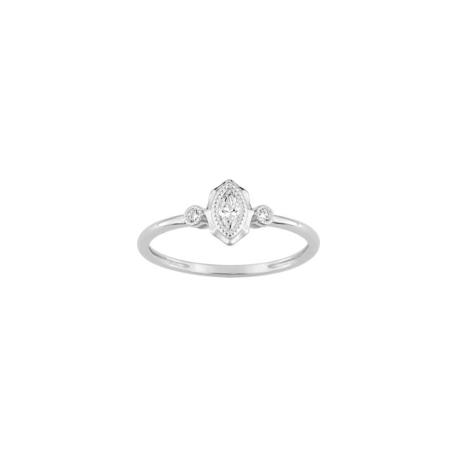 Bague en or blanc, oxyde de zirconium et émeraudes