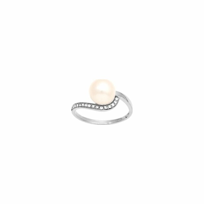 Bague en argent 925, perle de culture et oxydes de zirconium