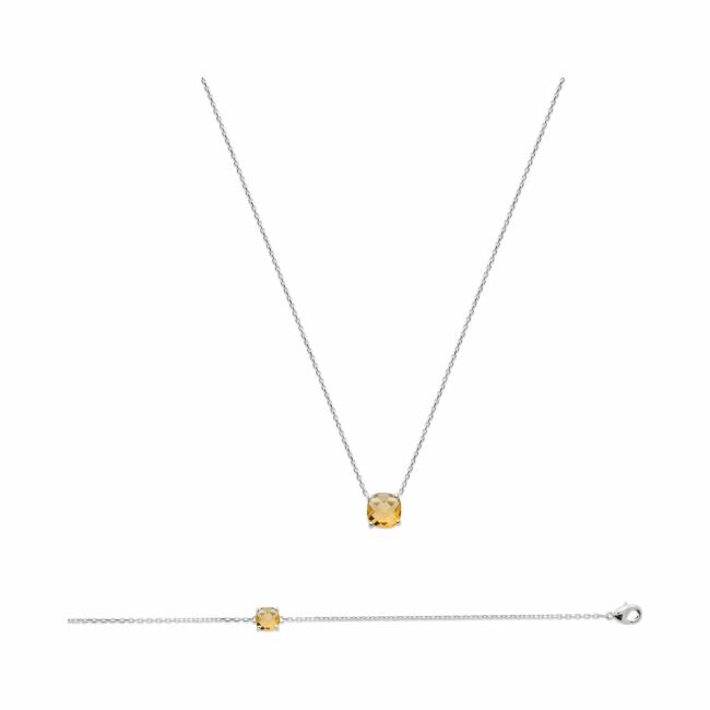Collier en argent rhodié, oxydes de zirconium et pierre synthétique, 45cm