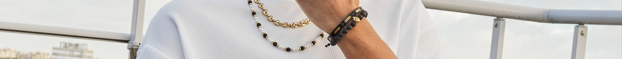 Ici, pas de fioritures. Juste l’essentiel. Des lignes franches, des textures maîtrisées, des finitions mates ou polies, parfois soulignées de cuir, de carbone, de céramique ou d’émail noir. Bracelets rigides ou tressés, chaînes graphiques, bagues massives, pendentifs minimalistes : chaque pièce raconte une masculinité contemporaine, assumée, libre de ses codes.