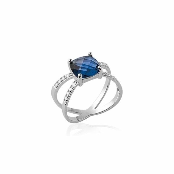 Bague en argent rhodié, oxydes de zirconium et pierre synthétique