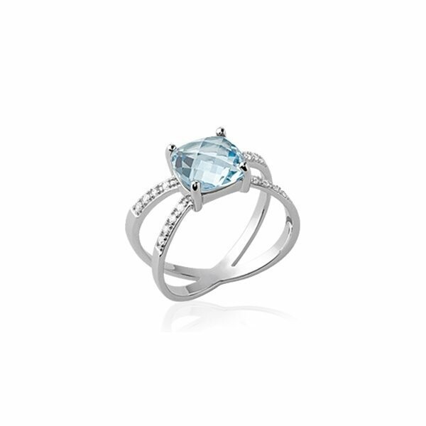Bague en argent rhodié, oxydes de zirconium et pierre synthétique