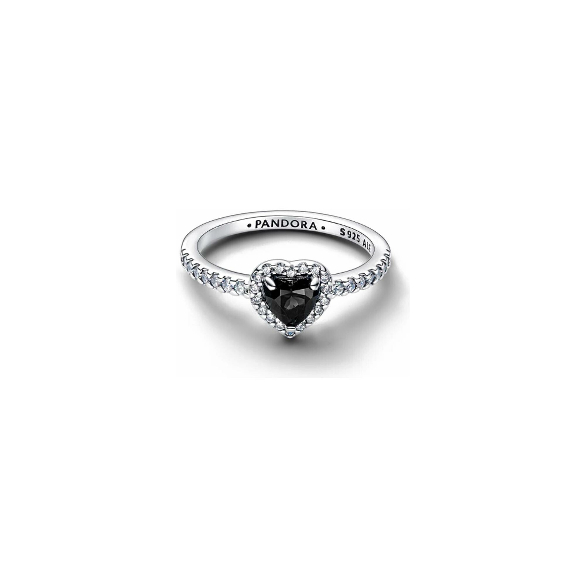 Bague Pandora Cœur Noir Surélevé en argent, taille 54