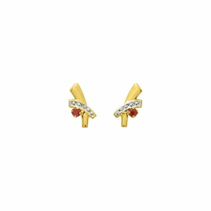 Boucles d'oreilles clou en or jaune, rhodium et rubis