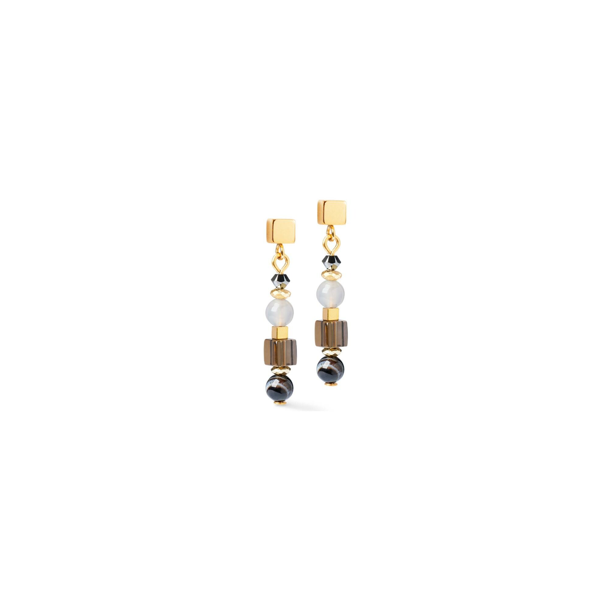 Boucles d'oreilles Coeur de Lion Shape Mix Spikes en acier doré, quartz fumé, onyx et agate et cristaux Swarovski