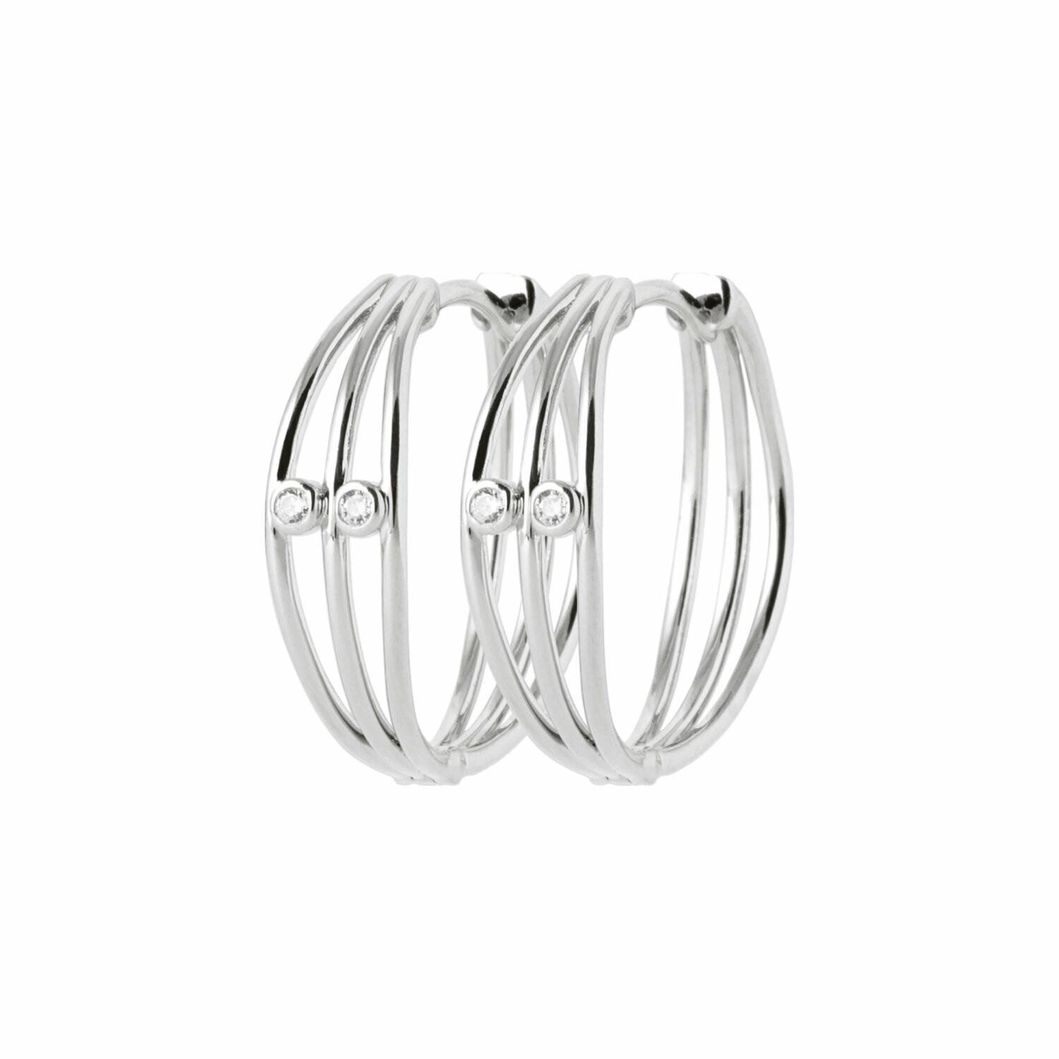 Boucles d'oreilles créoles en argent rhodié et oxydes de zirconium