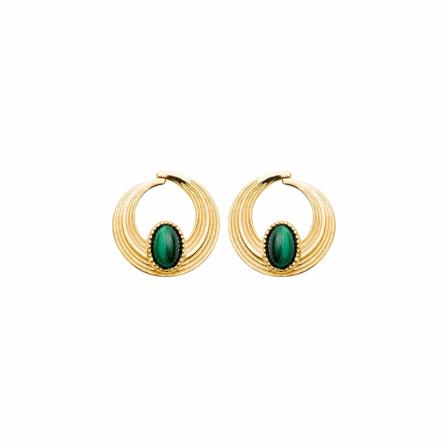 Boucles d'oreilles en plaqué or et malachite