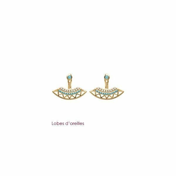 Boucles d'oreilles en plaqué or, oxydes de zirconium et pierre synthétique