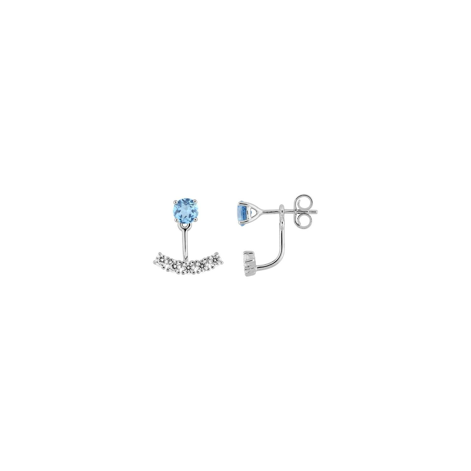 Boucles d'oreilles pendantes en or blanc, topazes et oxydes de zirconium
