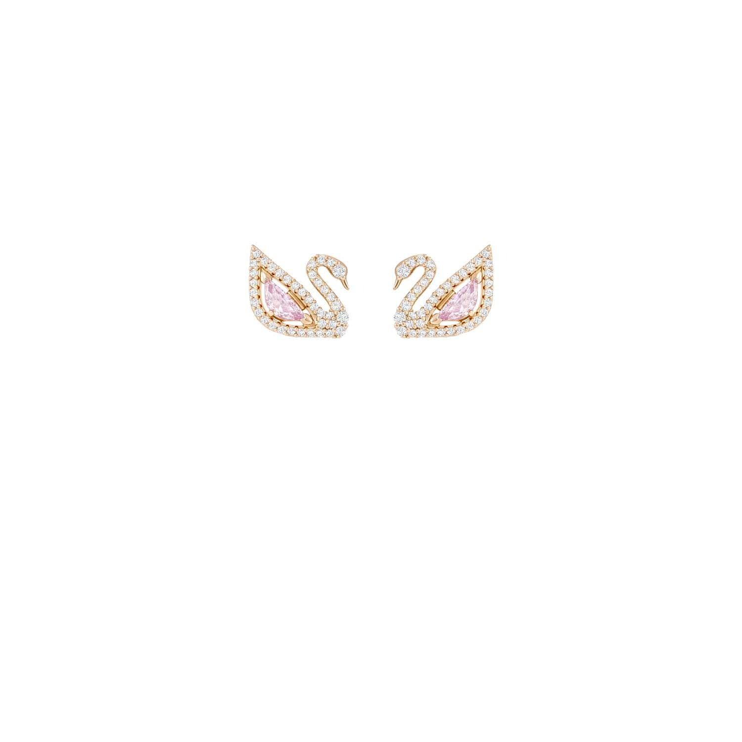 Swan Boucles d'oreilles Swarovski Swan en métal doré et cristaux Swarovski