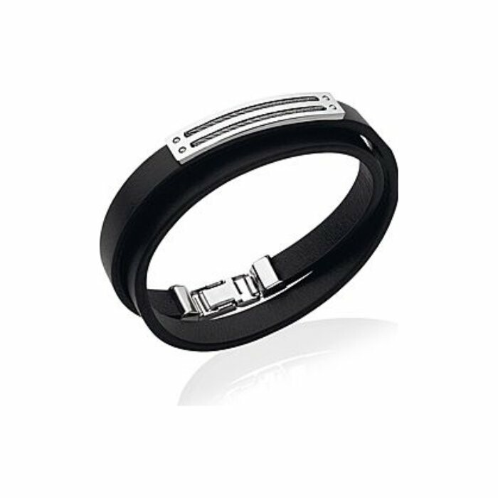Bracelet en acier et cuir, longueur de 21cm