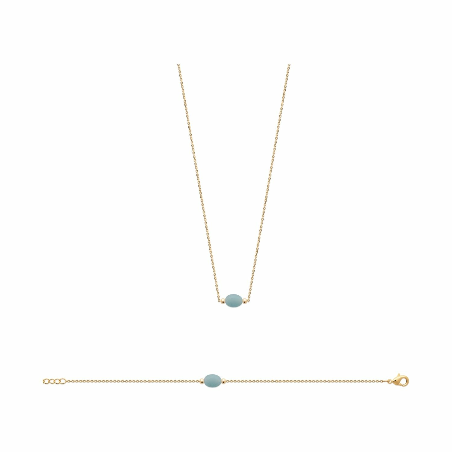 Bracelet en plaqué or et amazonite, 18cm