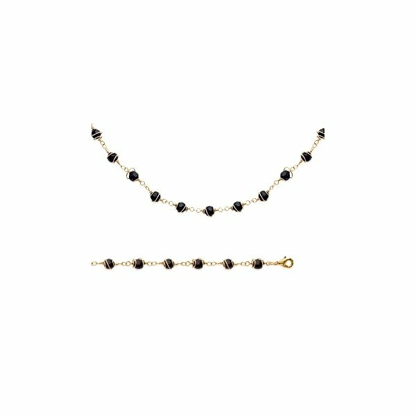 Bracelet en plaqué or et onyx d'imitation, 19cm