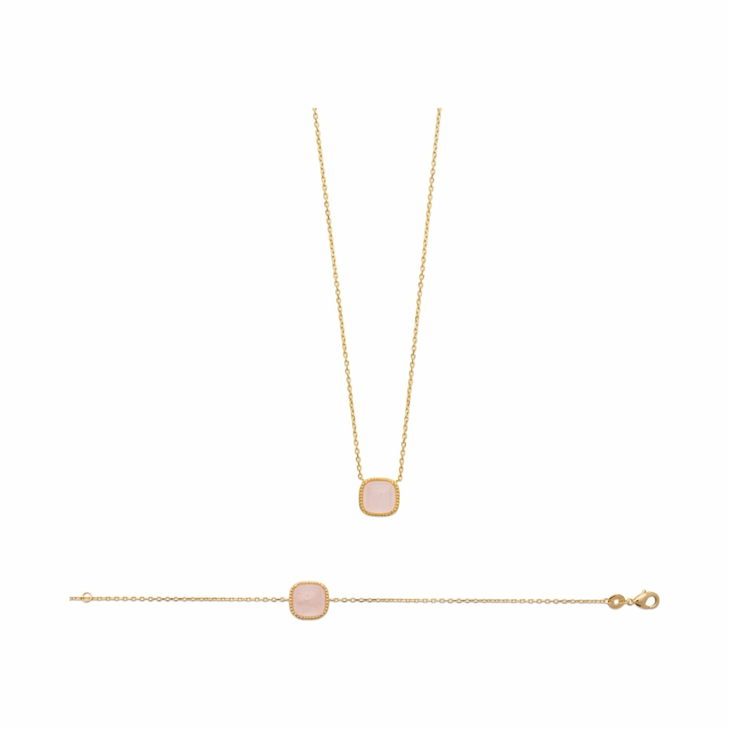 Bracelet en plaqué or et quartz rose, 18cm