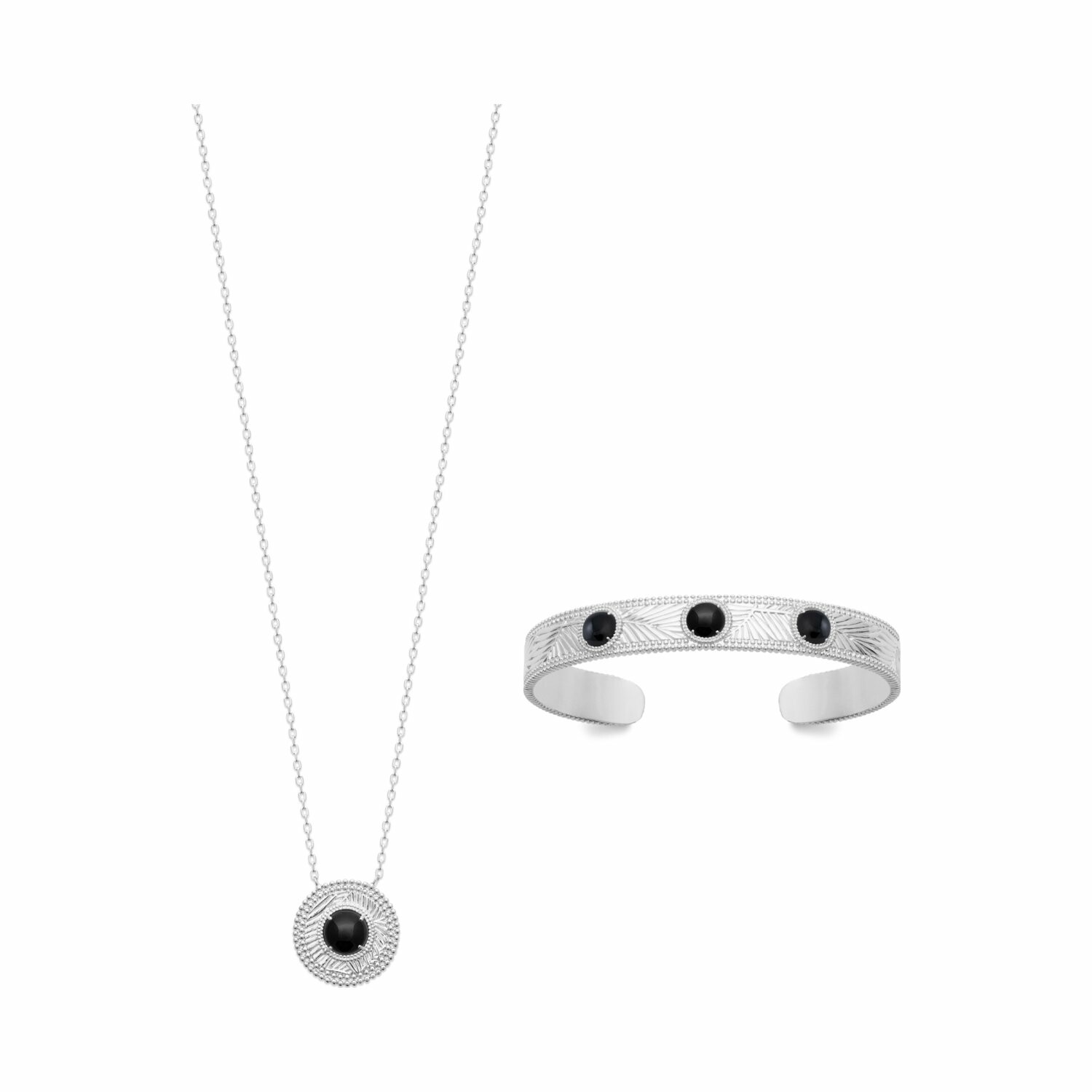 Bracelet jonc en argent rhodié et agate noire