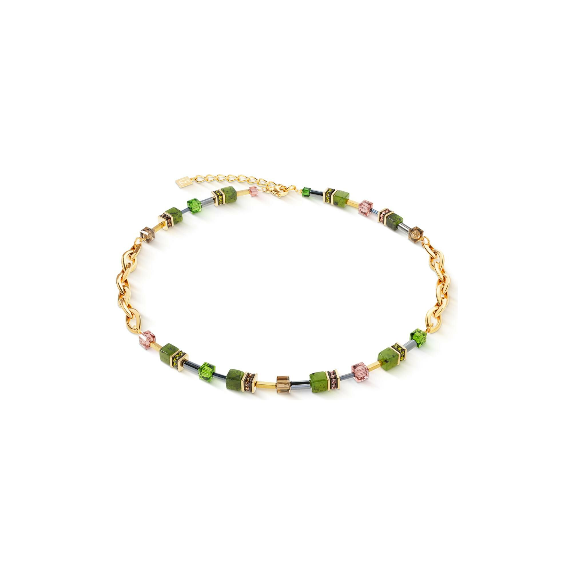 GeoCUBE Collier Coeur de Lion GeoCUBE Chunky Chain en acier doré, nephrite, cristaux Swarovski et strass et hématite
