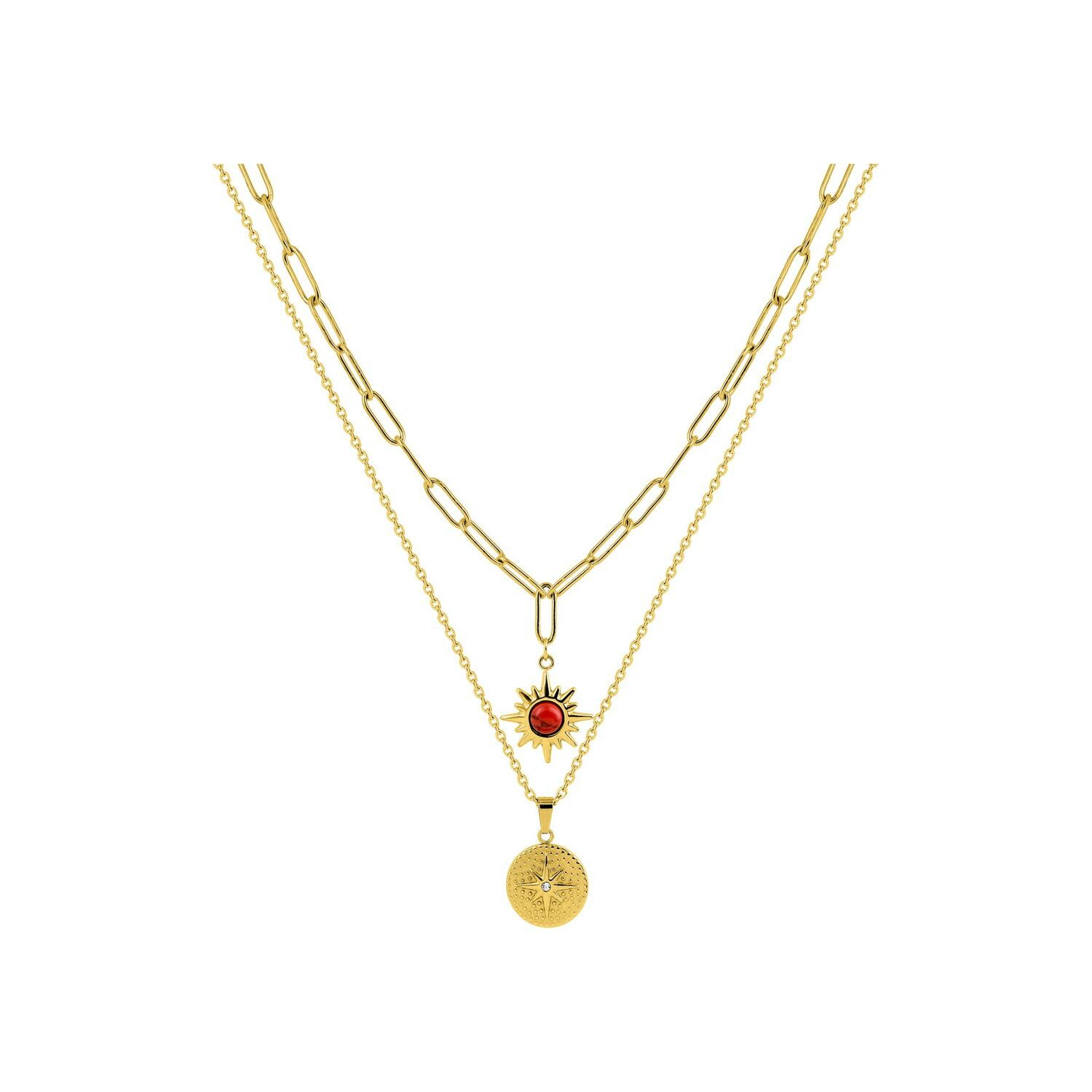 Collier en acier doré et turquoise rouge synthétique
