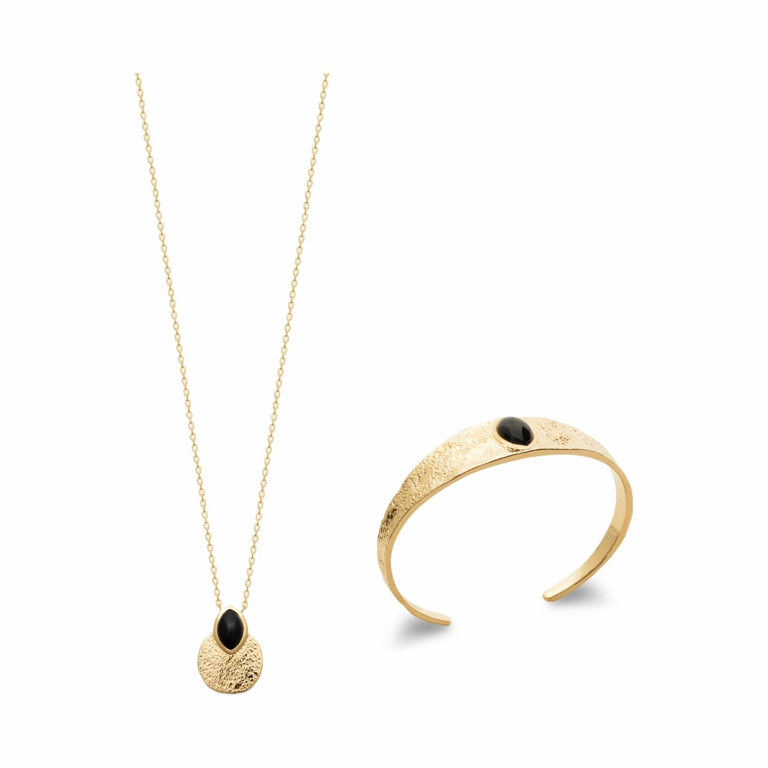 Collier en plaqué or et agate noire, 45cm