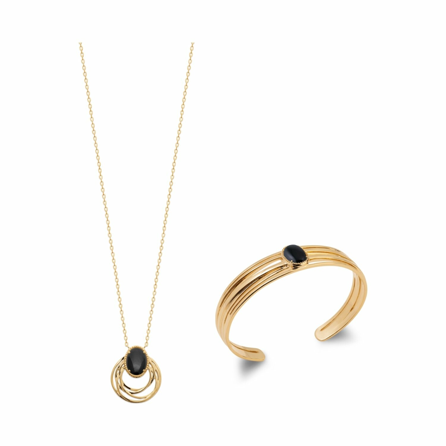 Collier en plaqué or et agate noire, 45cm