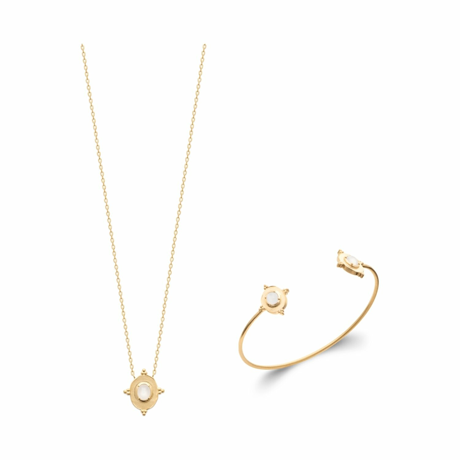 Collier en plaqué or et pierre de lune, 45cm