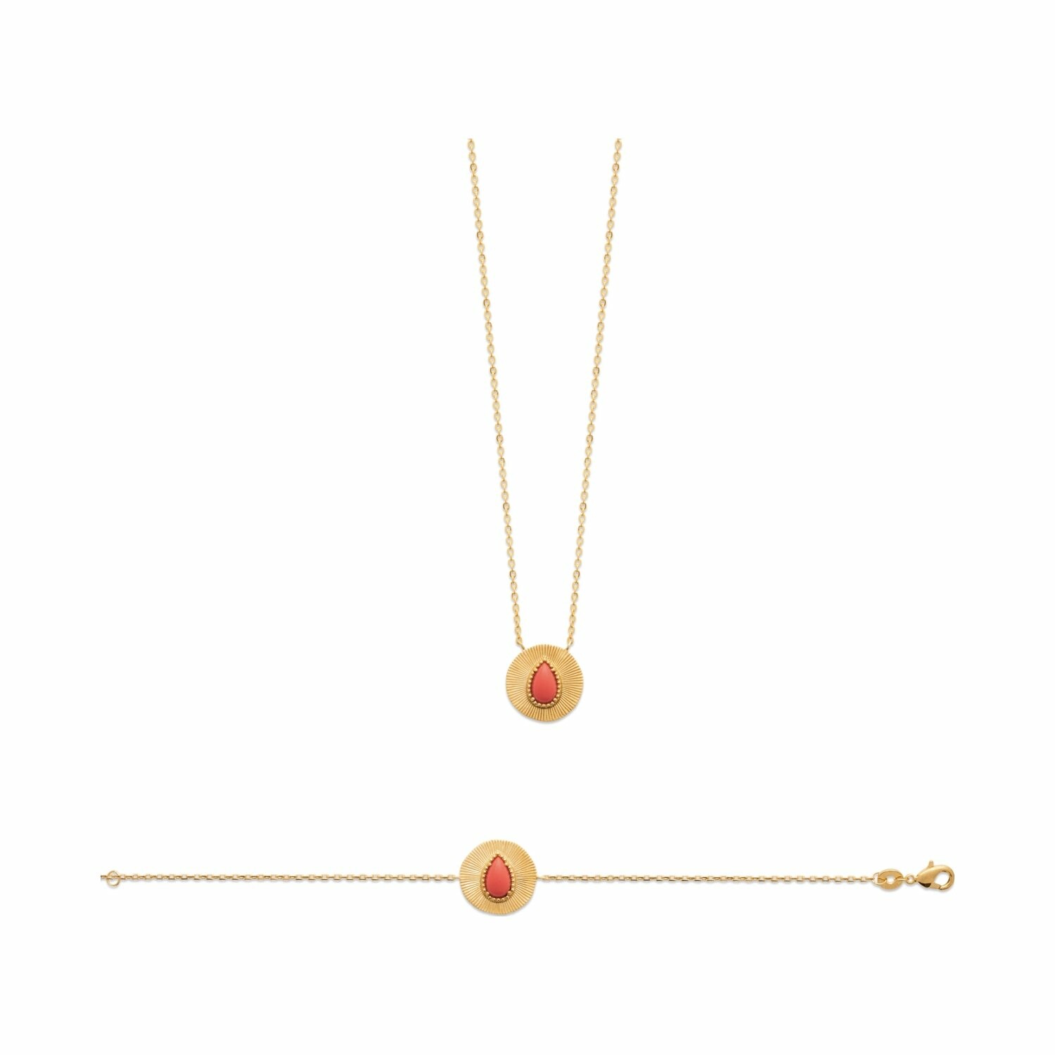 Collier en plaqué or et pierre synthétique, 45cm