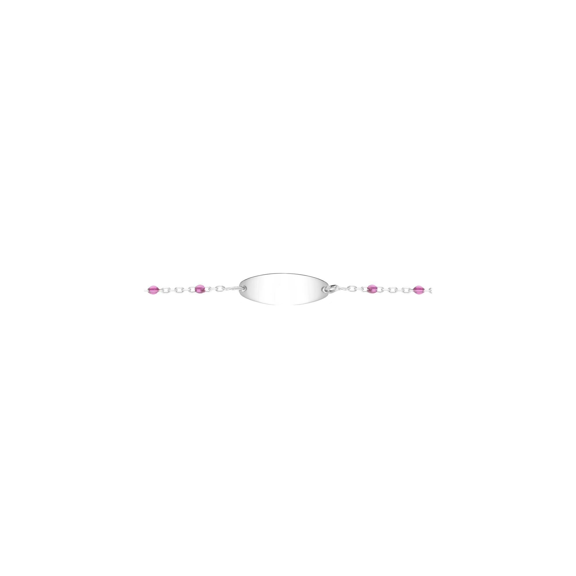 identité bebe résine violette plaque ovale argent rhodié 13+2cm