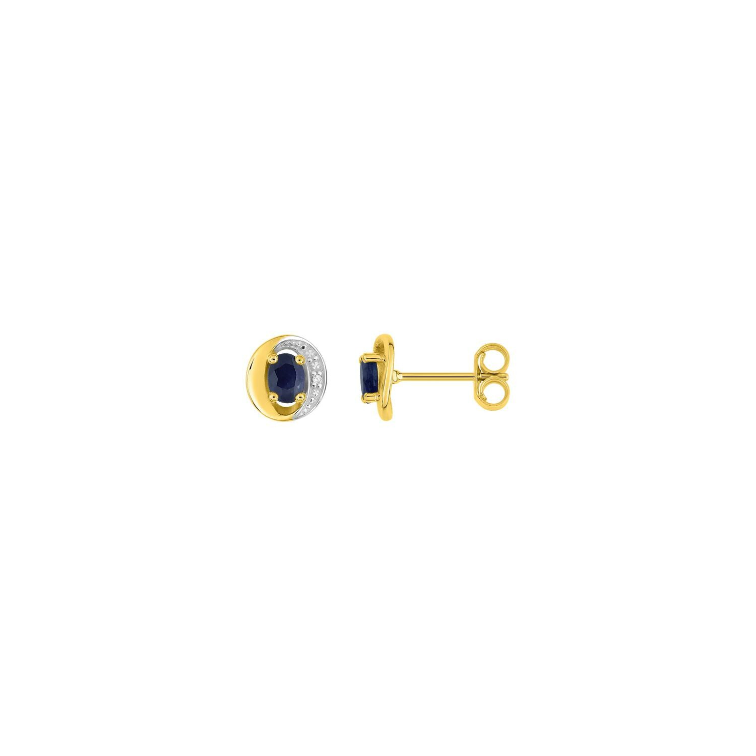 Puces d'oreilles en or jaune rhodié, diamants et saphirs
